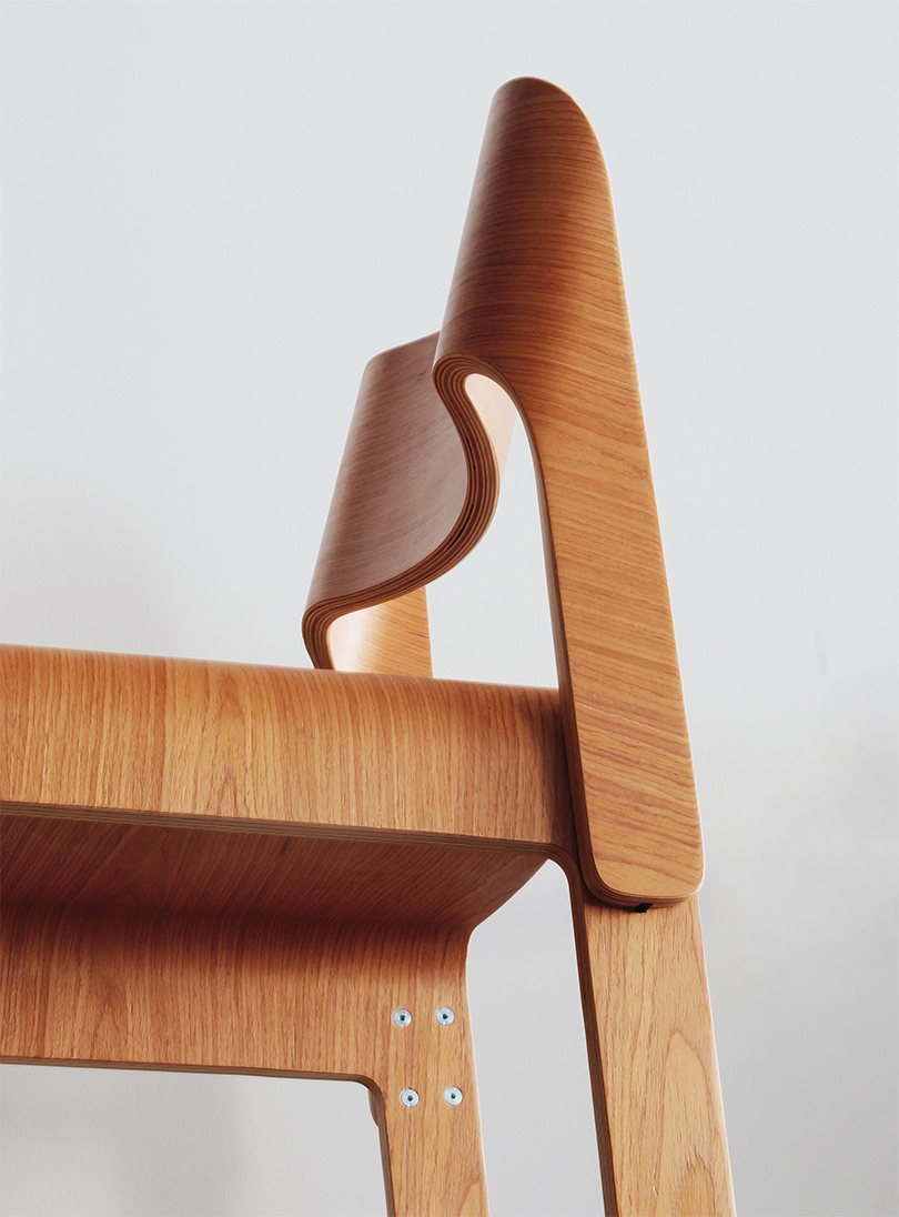 A flat-pack dining chair made of ash wood, combining a clean orthogonal profile with surprisingly comfortable seating