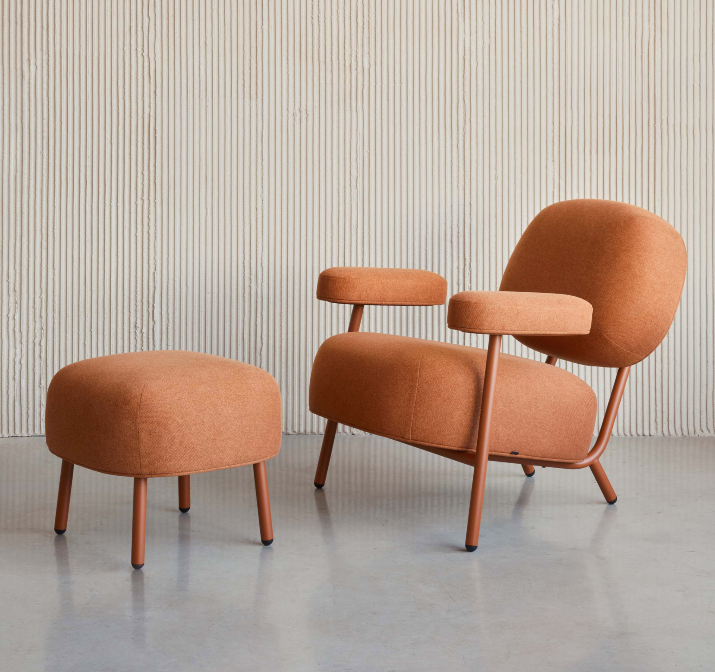 Kaef armchair carries on a tradition of classical lounge chairs defined by the low-placed and inclined seat, comfortable armrests and the presence of footstool.