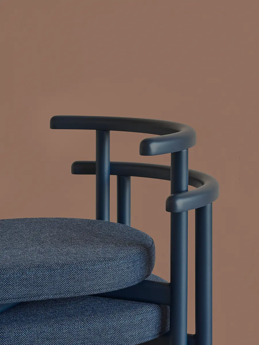 The first Nra chairs were released in 2016. Since then, Nra has significantly evolved and developed into a whole collection, which includes stools, benches, and chairs of various heights. The sturdy frame is made of metal, the backrest is made of plywood, and the seat can be made of plywood or be upholstered. Over time, worn-out details can be changed.